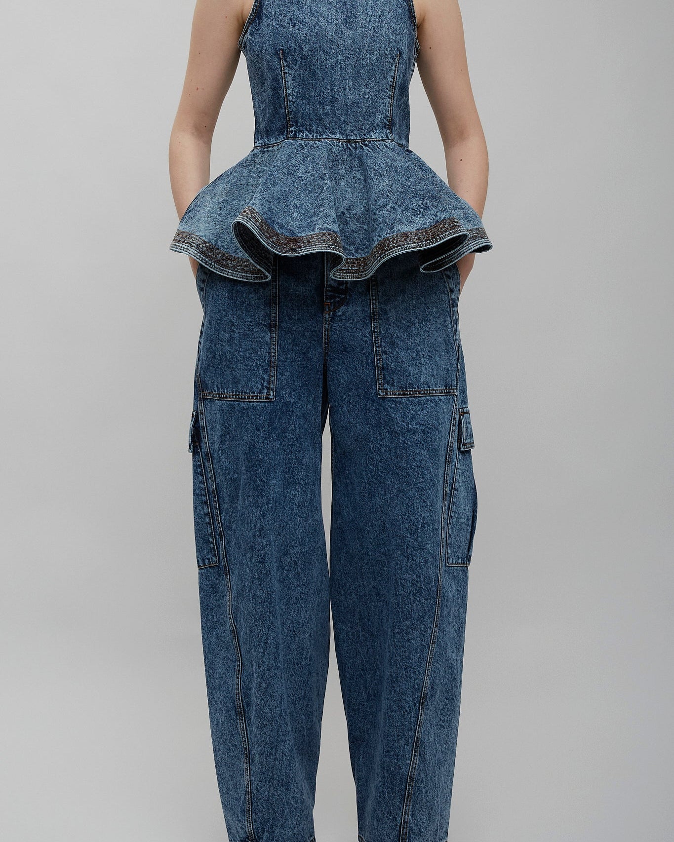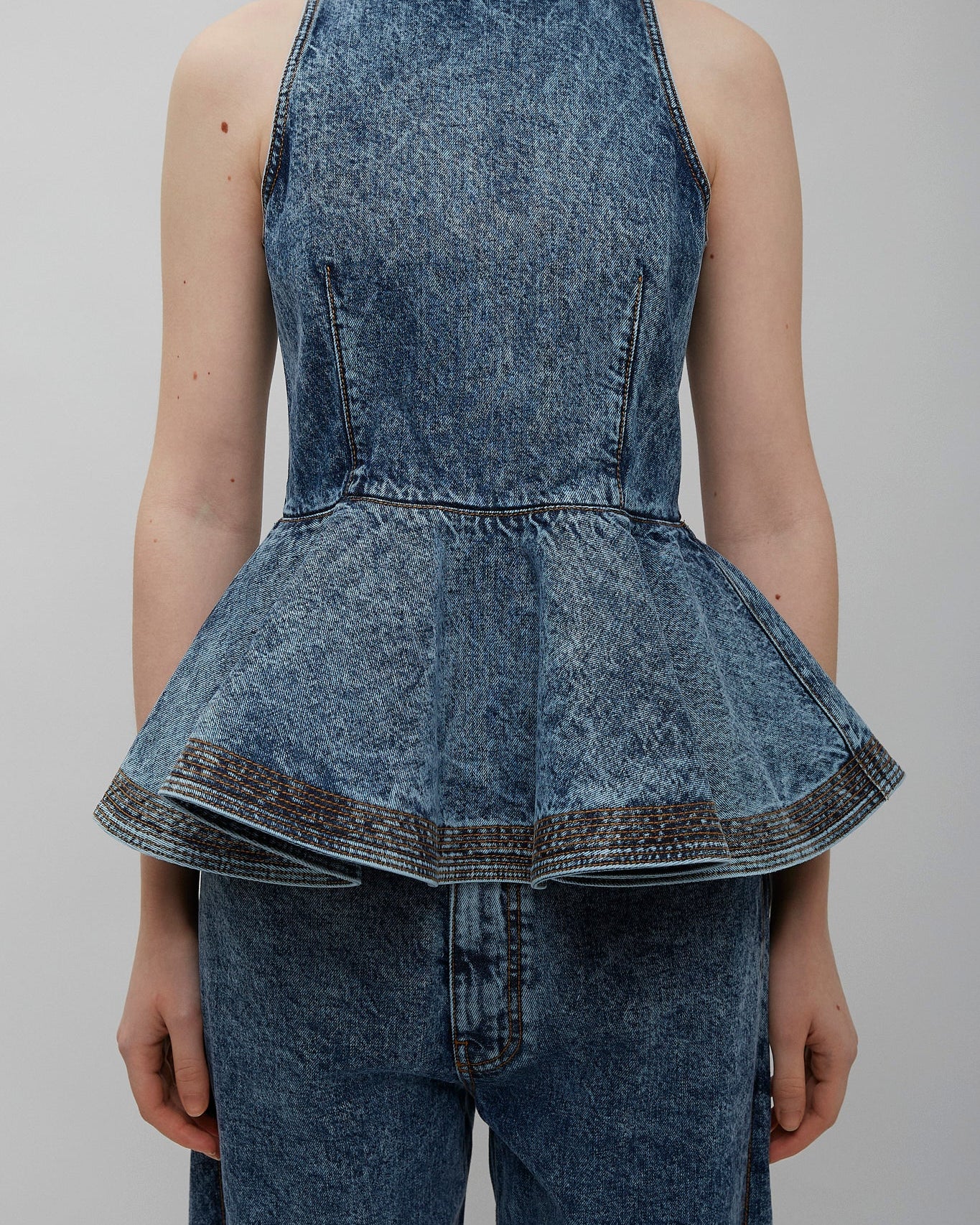Blue denim peplum top