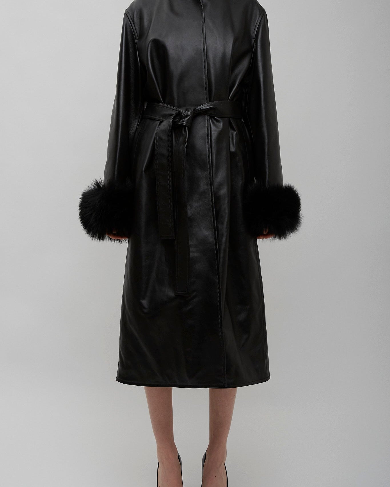 Alaia black leather long coat
