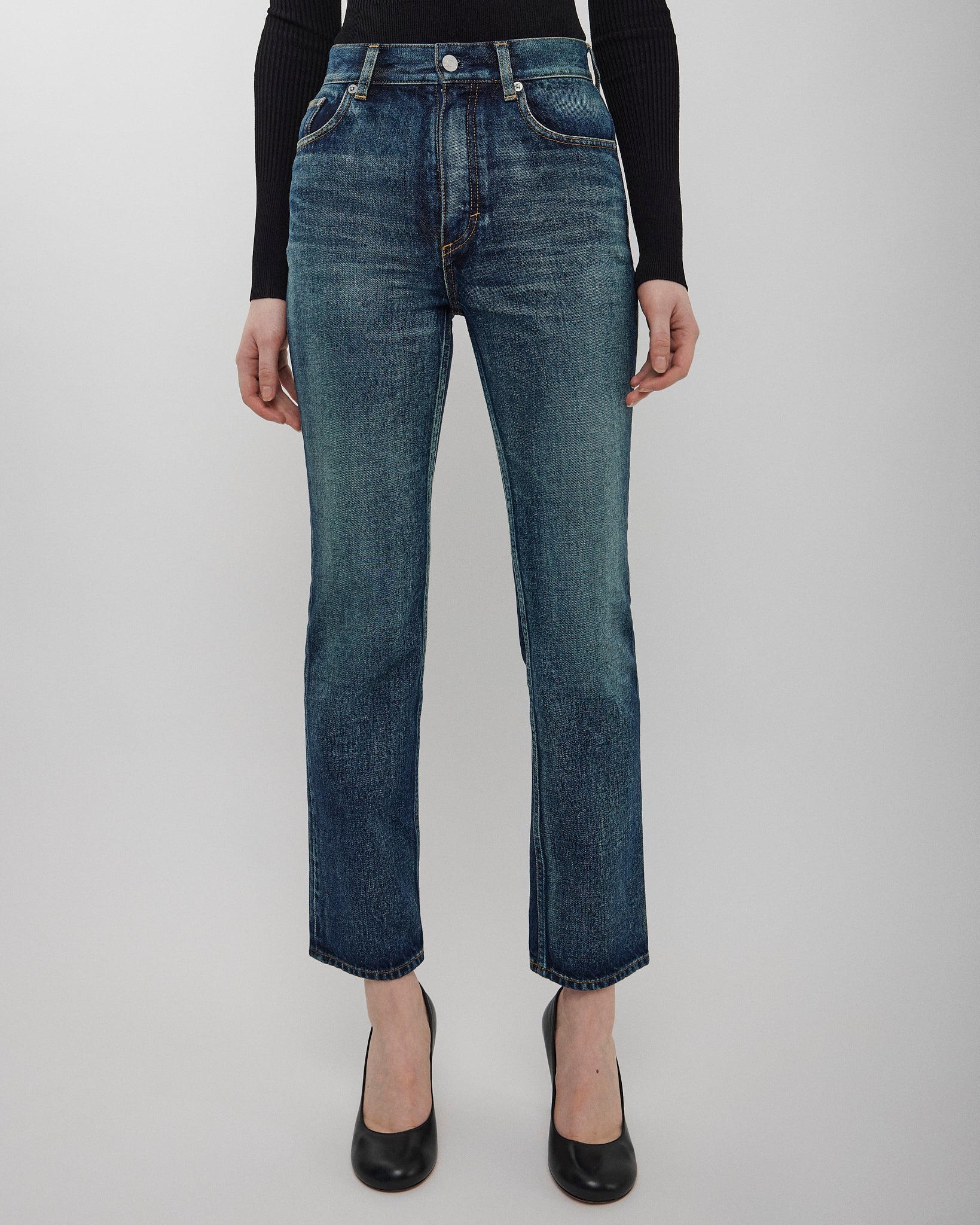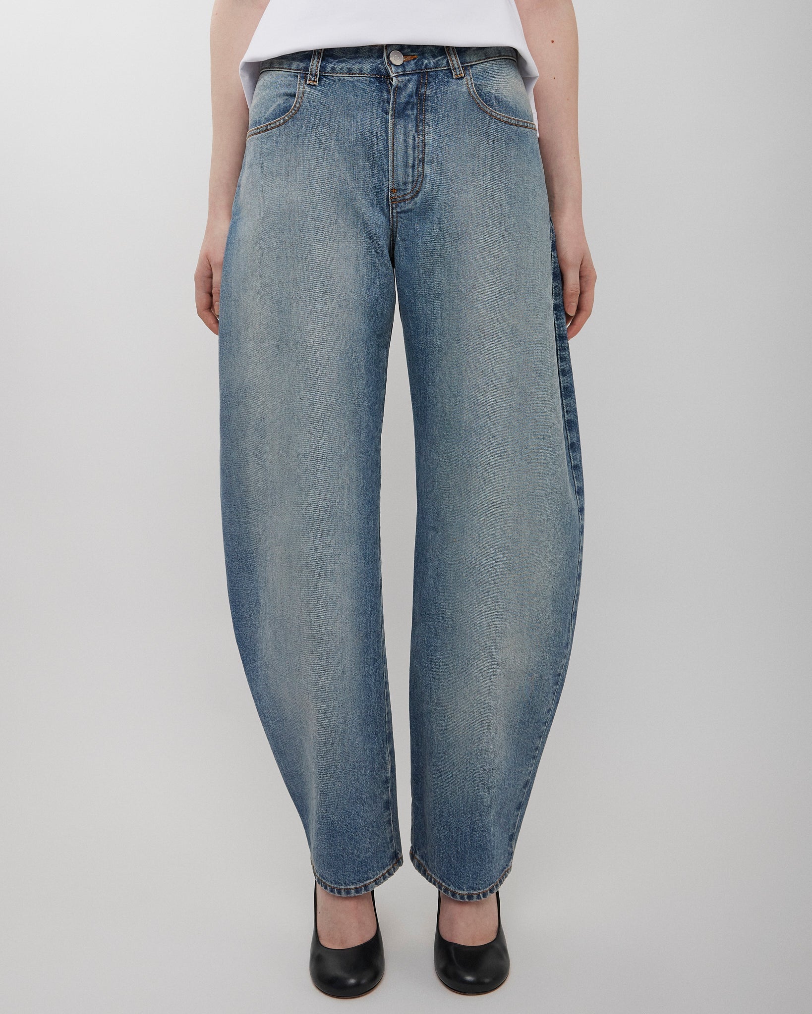 Round faded blue jeans