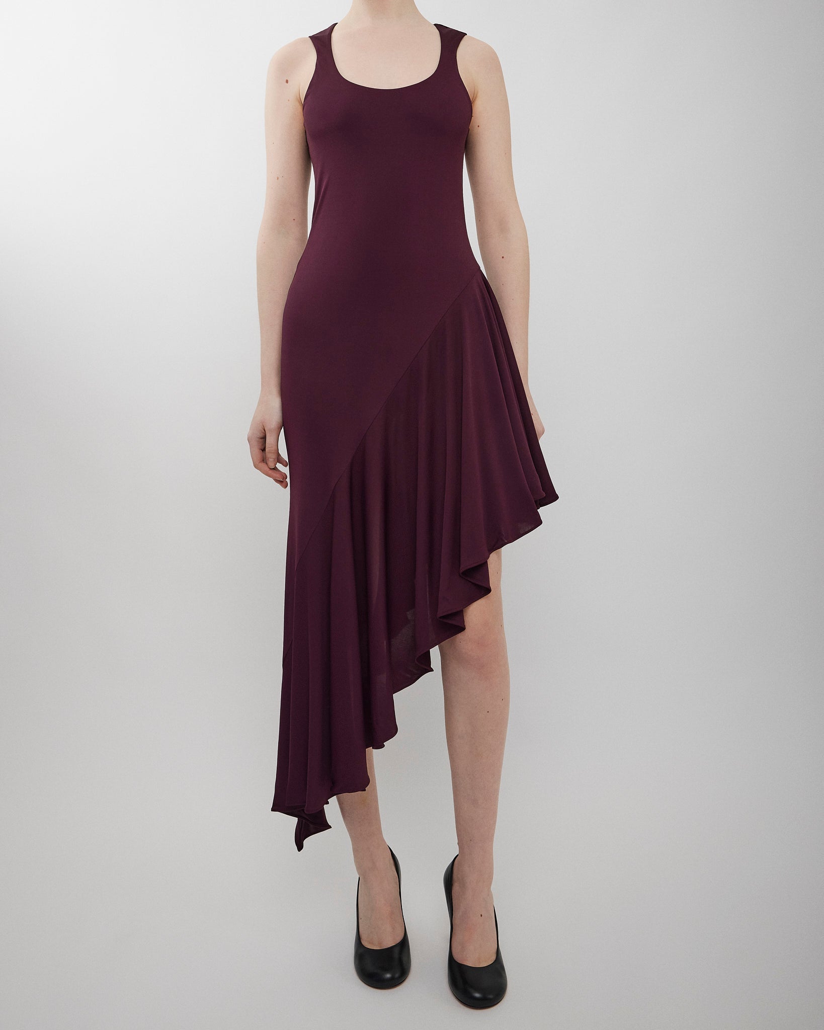 Asymmetric burgundy dress