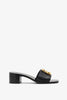 Black leather mules from Givenchy. The 4G mules are made of smooth lambskin leather with a black leather insole with the designer's signature, a gold-finish metal 4G piece on the top, set on a block heel measuring 45mm.
