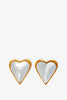 Heart-shaped earrings from Alaïa. The Le Coeur Bombe earrings are made of gold tone brass and transparent resin and deliver a mirror effect, to be worn in pierced ears with both a clip and pin closure.