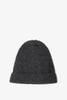 Black cashmere beanie from The Row. The Leomir beanie is made in textured alpaca and cashmere bouclé with ribbed construction and clean finish.