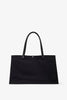 Black canvas tote bag from The Row. The Idaho XL tote bag is made from cotton canvas with leather trims in a softly structured silhouette, featuring a snap-button closure, two top handles, silver tone hardware, internal zipped pocket, internal slot pocket and a detachable pouch.Measurements: L66 x H30 x W23 cm
