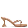 Beige canvas mules from Amina Muaddi. The Lily mules are made of beige canvas with a rounded toe, set on the brand's signature sculptural heels measuring 70mm, complete with dainty criss-cross toe straps that feature crystal flower embellishments.