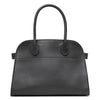Black leather tote bag from The Row. The Soft Margaux tote bag is made of smooth black leather with golden detailing, adjustable buckled sides, an open top along with an optional shoulder strap.