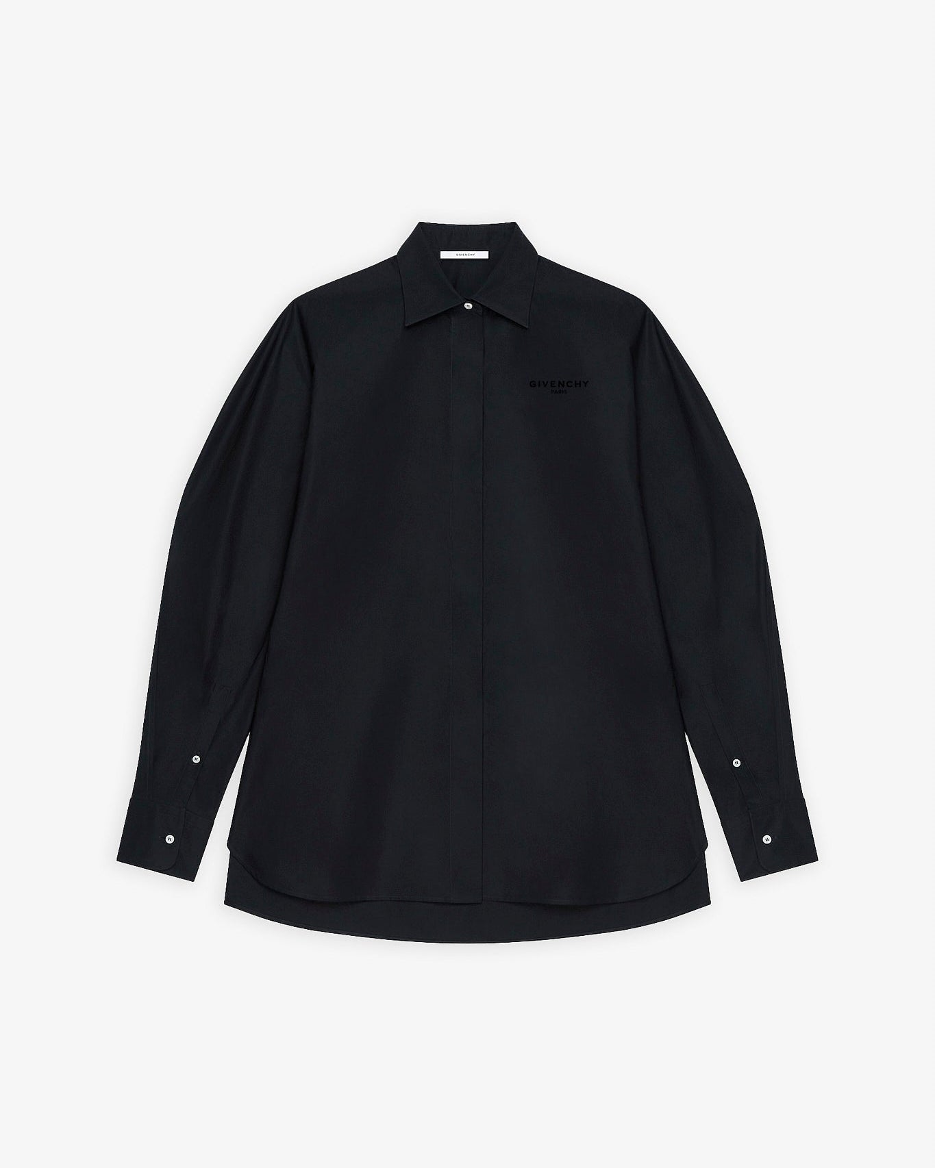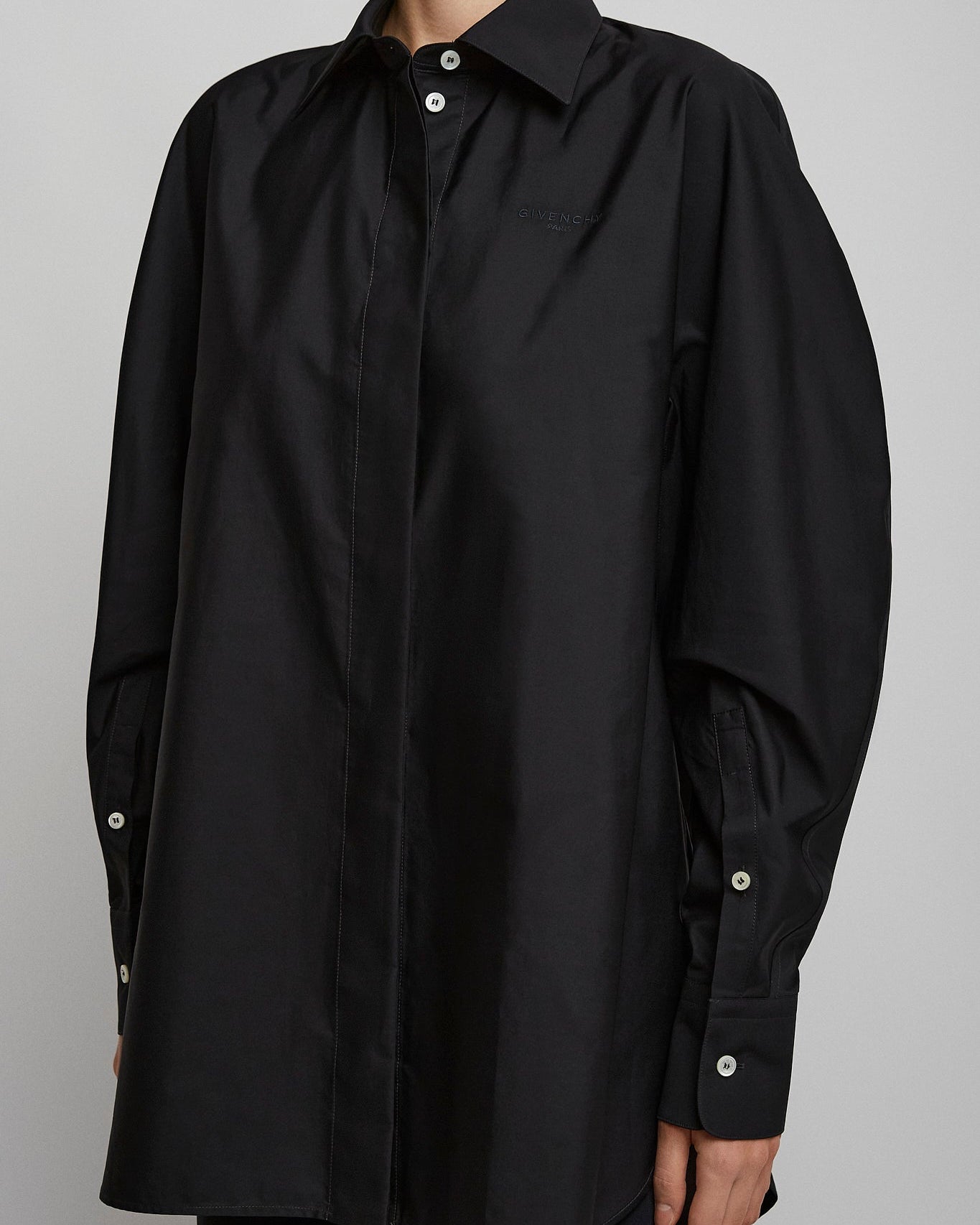 Cocoon black shirt with turned sleeves