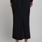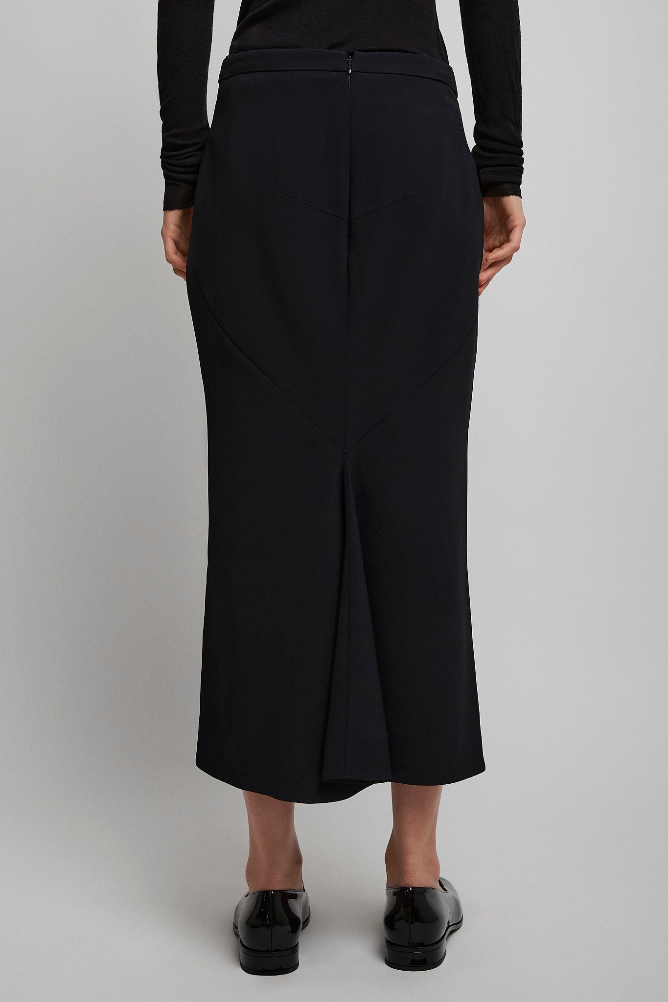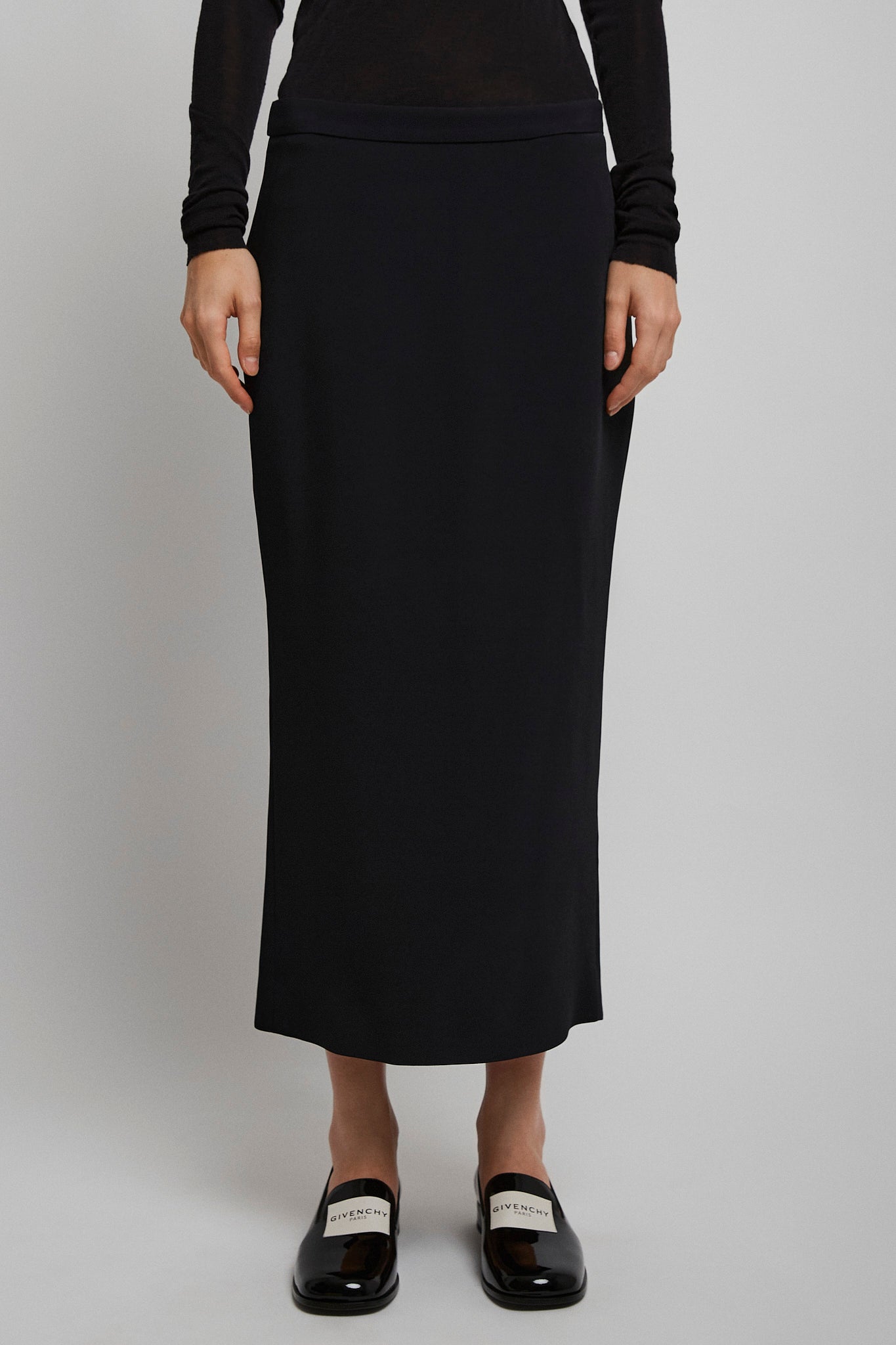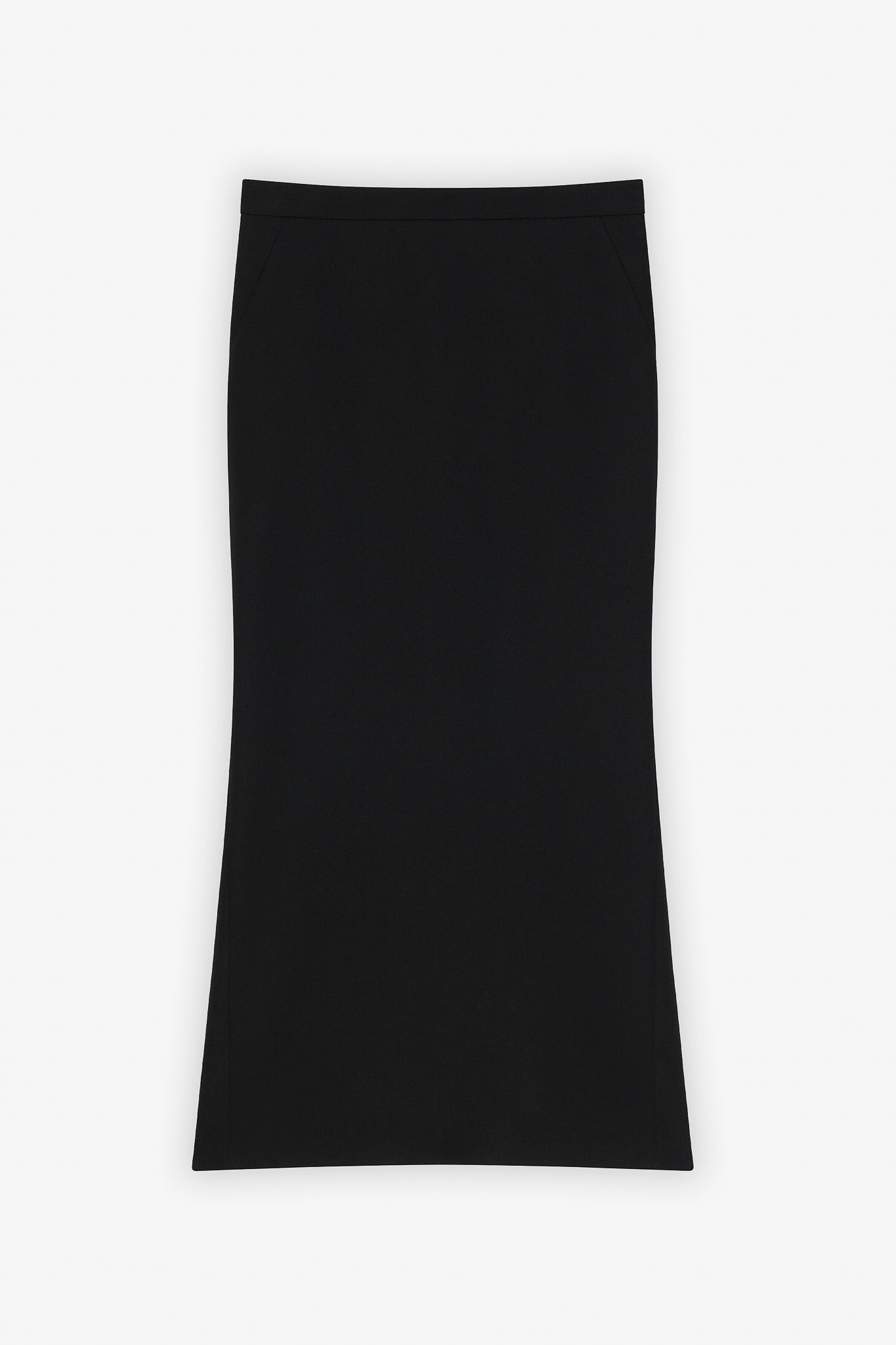 Black cady crepe mid-length skirt from Givenchy. The Mid length skirt is made in cady crepe with a pleated detail on the back and an invisible zipped closure on the back.