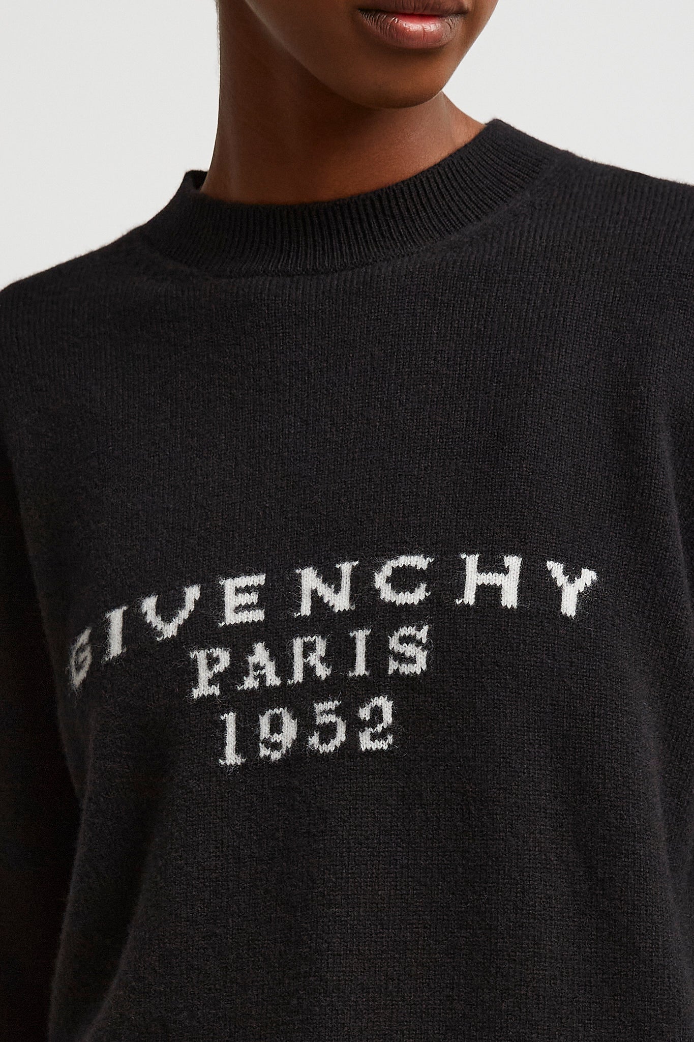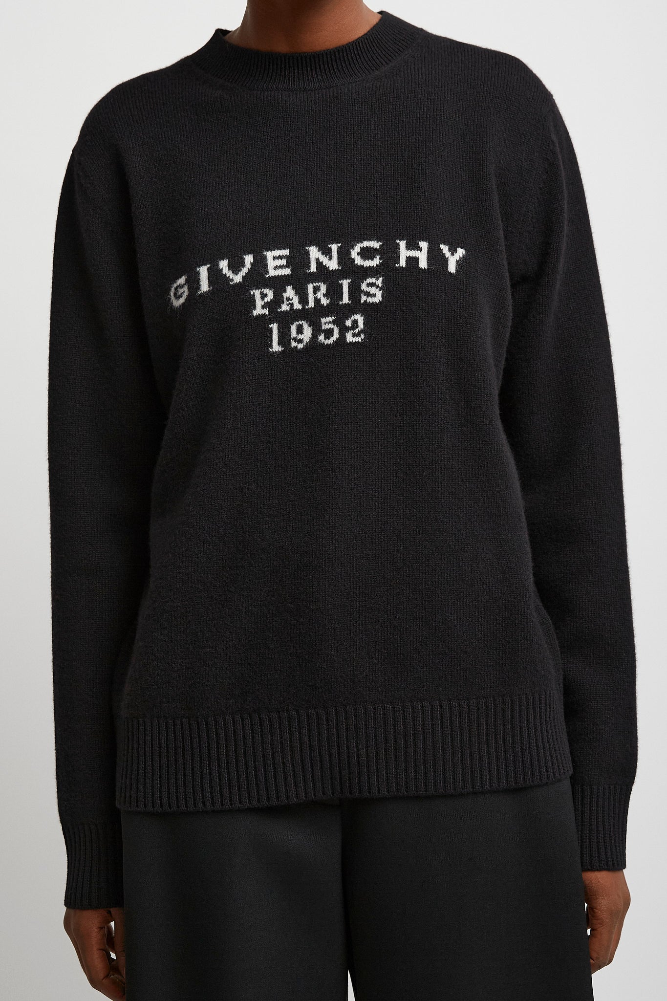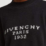 Black wool and cashmere sweater from Givenchy. The Crew neck sweater is made in wool and cashmere with a crew neck and logo on the front.