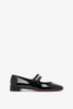 Black patent leather ballet flats from Christian Louboutin. The Sweet Jane are made of black patent calfskin leather, featuring two elasticated straps with tonal buckles that crossover the instep, set on a flat rubber block heel.
