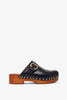 Black leather clogs from Chloé. The Jeannette wedge clogs are made of leather, set on a chunky heeled wooden sole measuring 45mm. It features gold-toned polished hardware on the upper complete with a Chloé-branded plate.