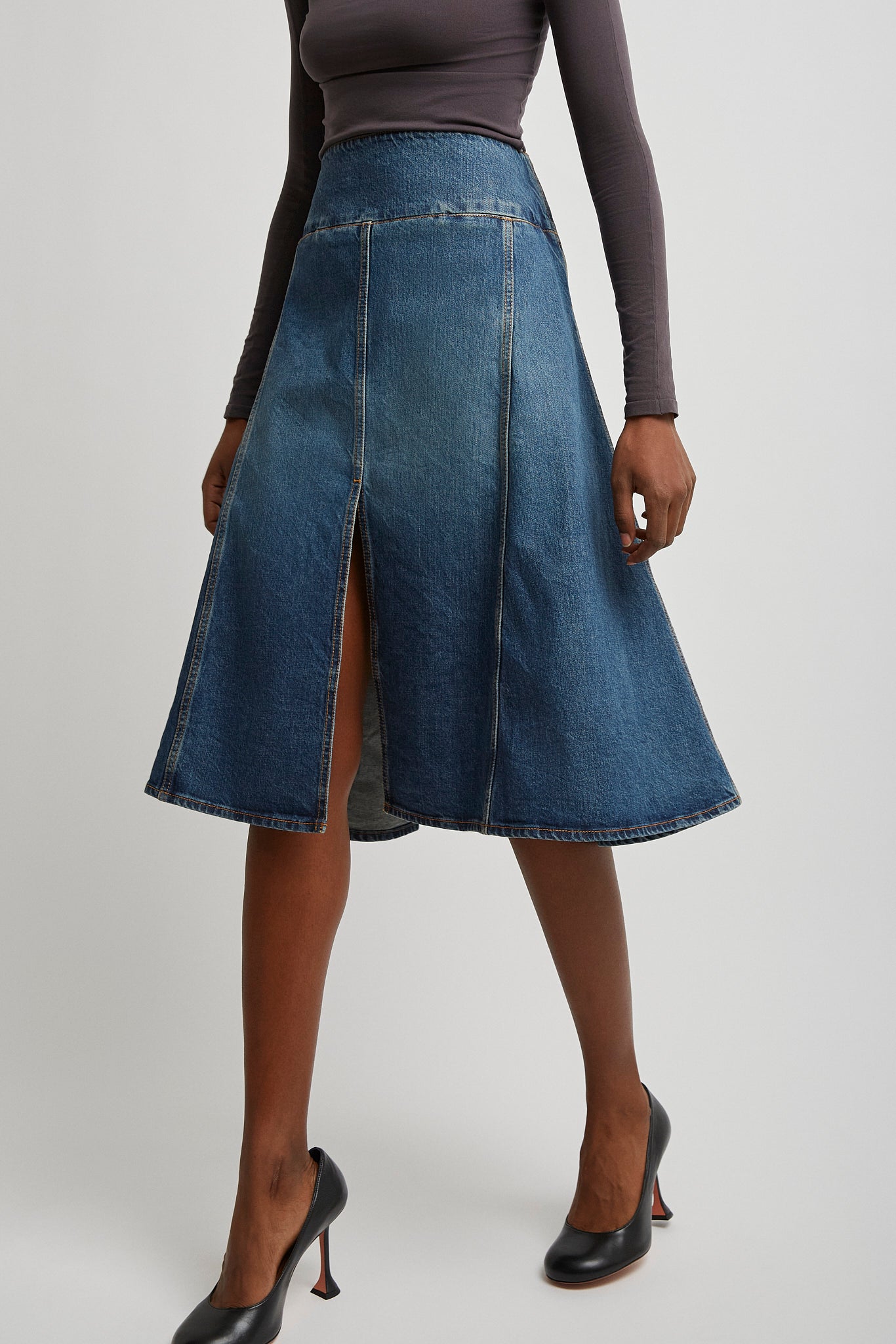 Denim slit skirt
