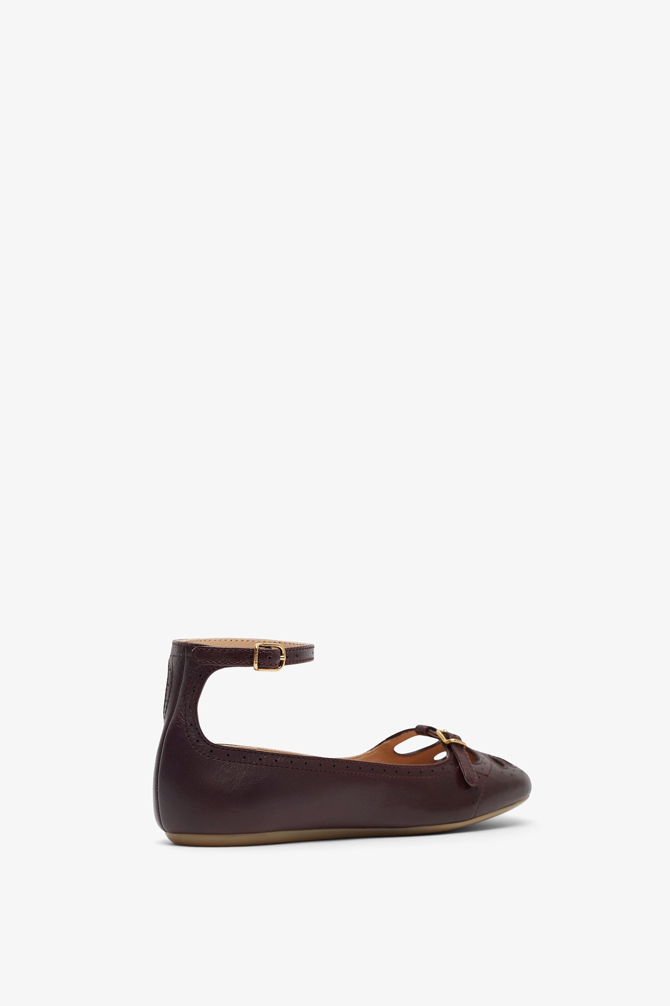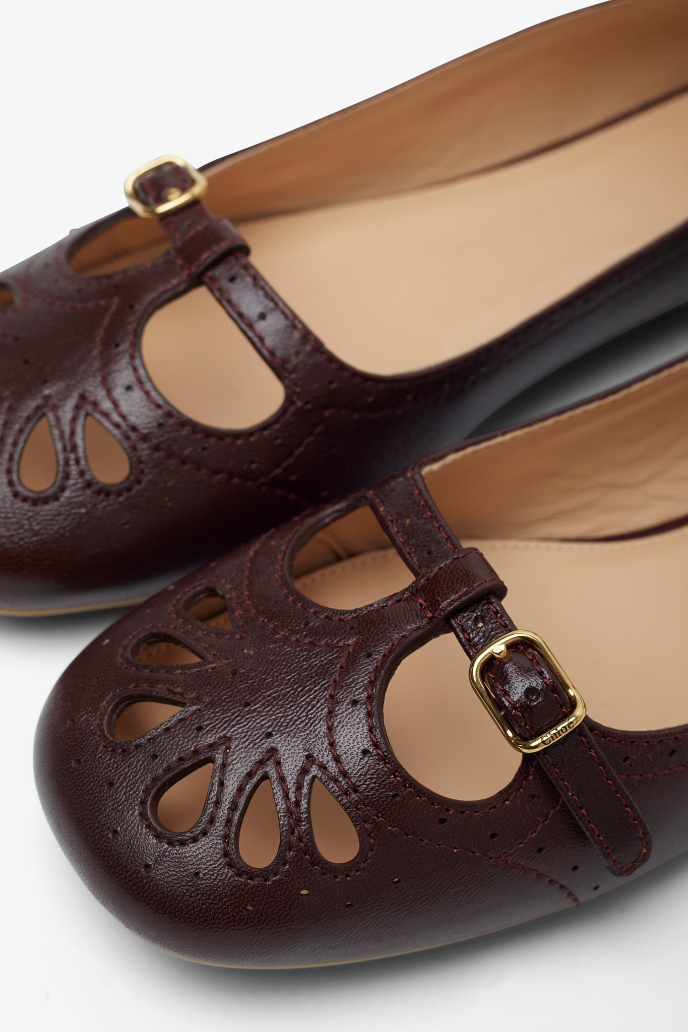 Dark purple ballet flats from Chloé. The Misty ballet flats are made of lambskin with a softly rounded toe with cut-out detail, and a light and supple rubber sole. It is complete with fine straps secured by gold-tone Chloé engraved buckles.