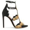 Black suede gold raffia 110 sandals