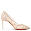 Follies Strass 85 beige suede mesh pumps