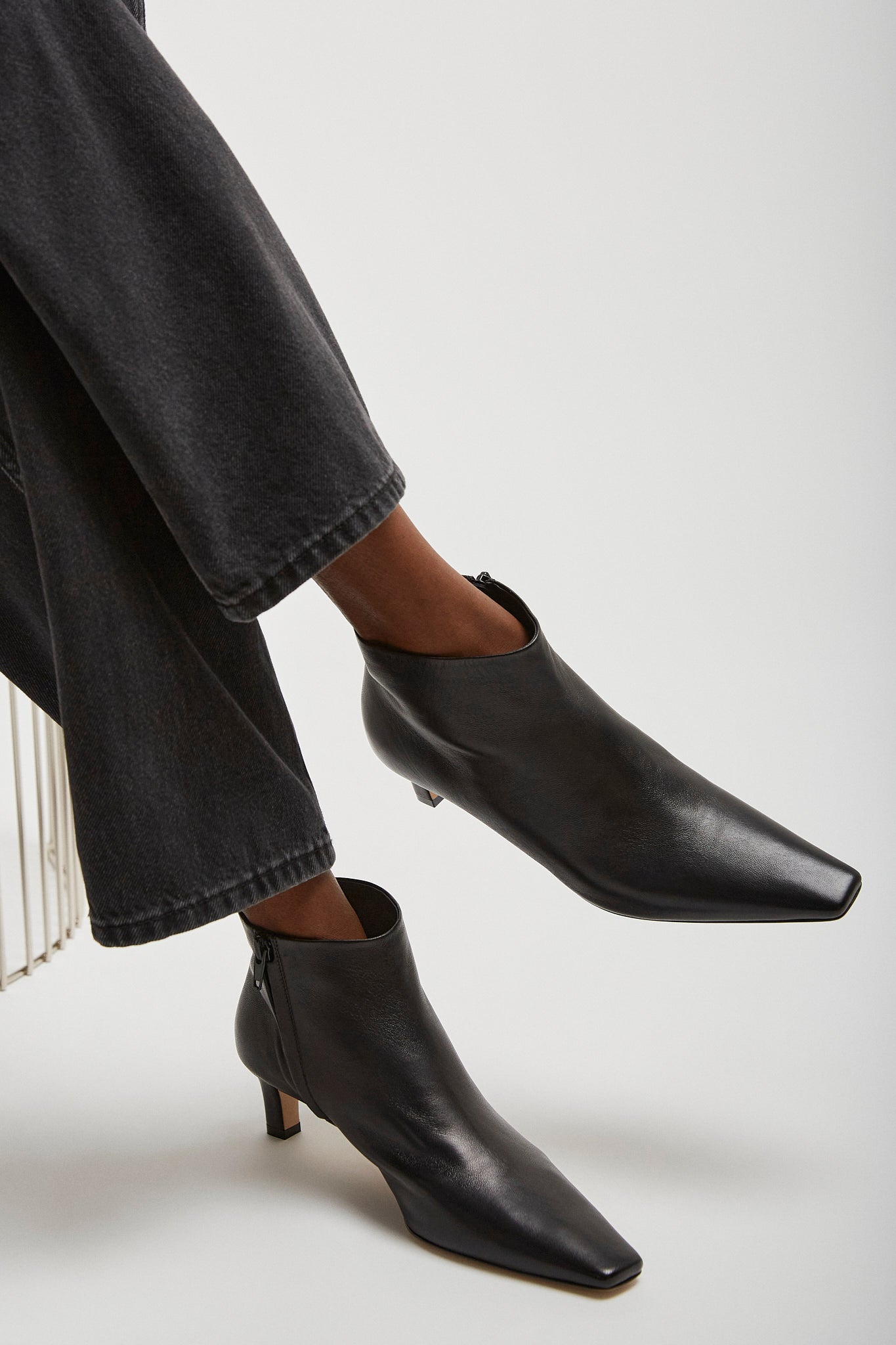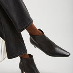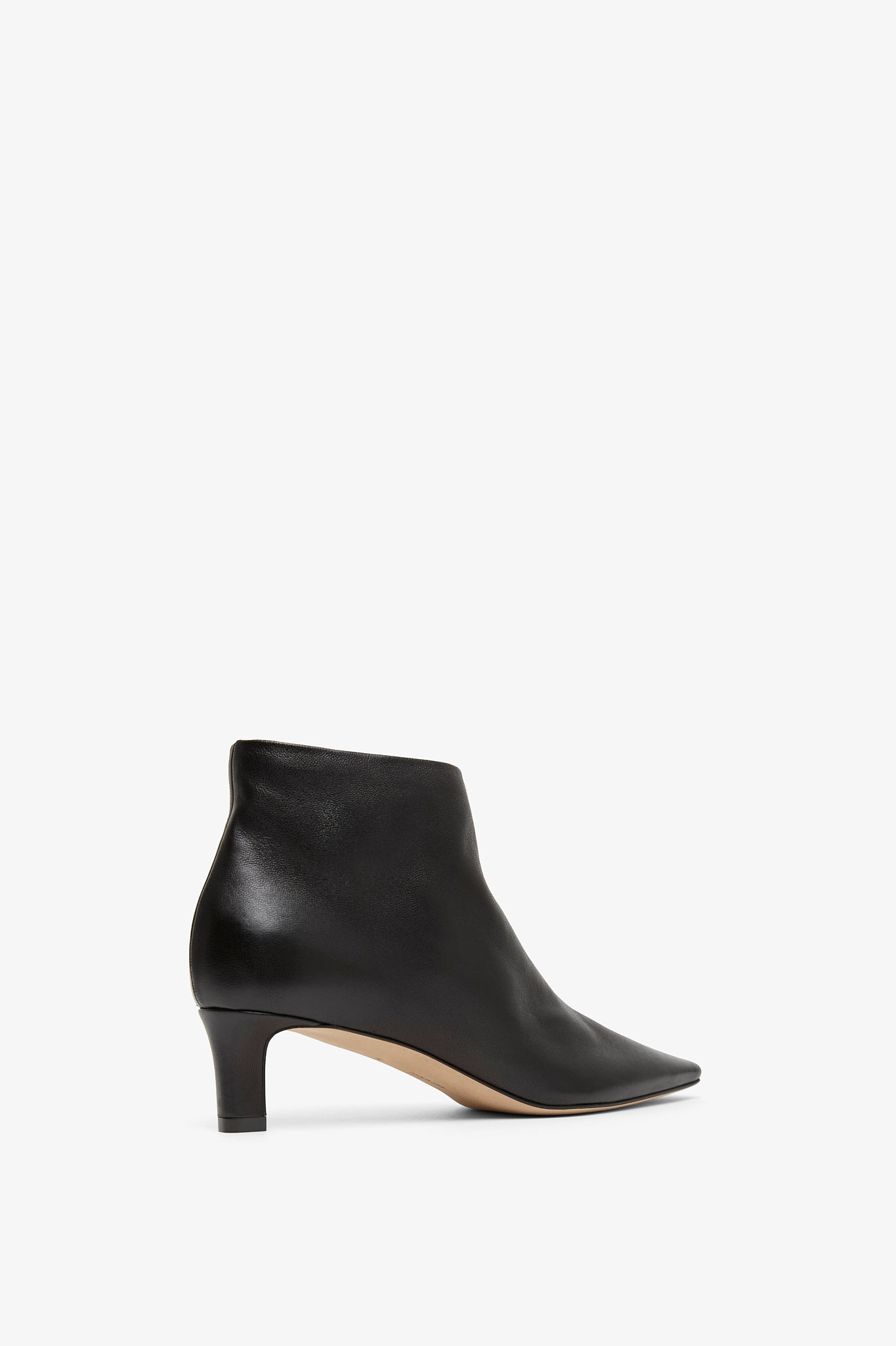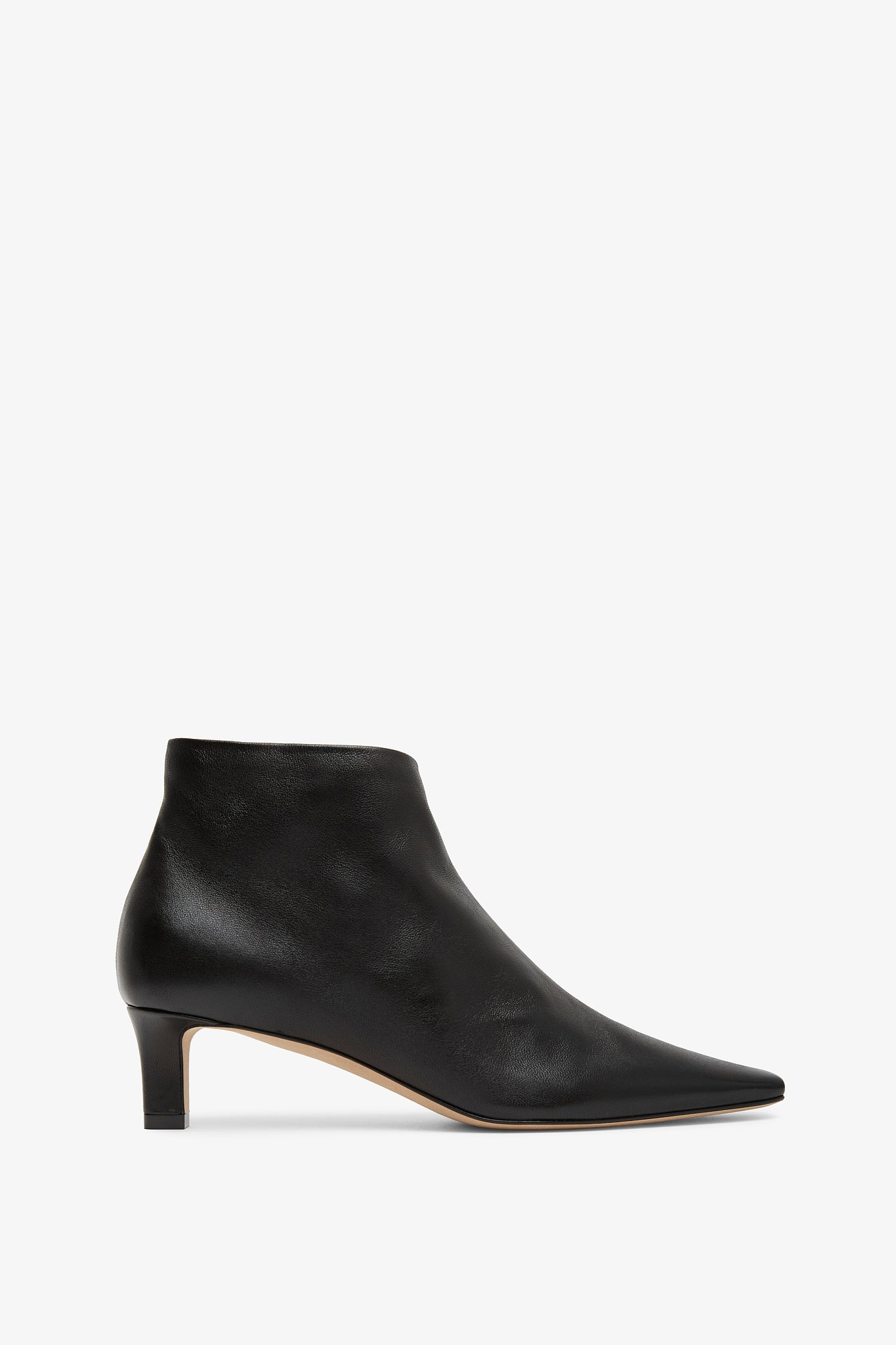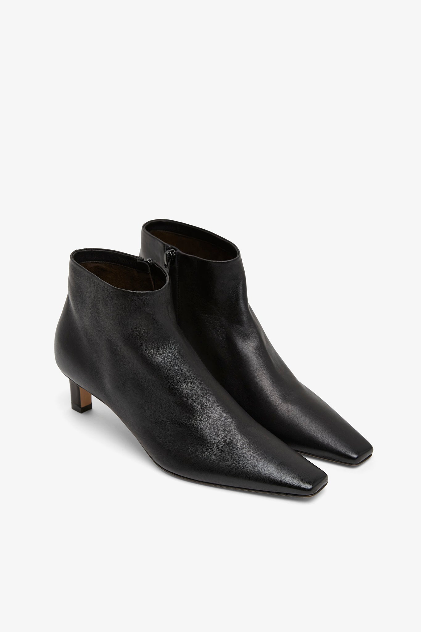 Black leather ankle boots from The Row. The Carla ankle boots are made in soft nappa leather with tapered square toe, inner side zip closure and leather sole.