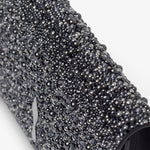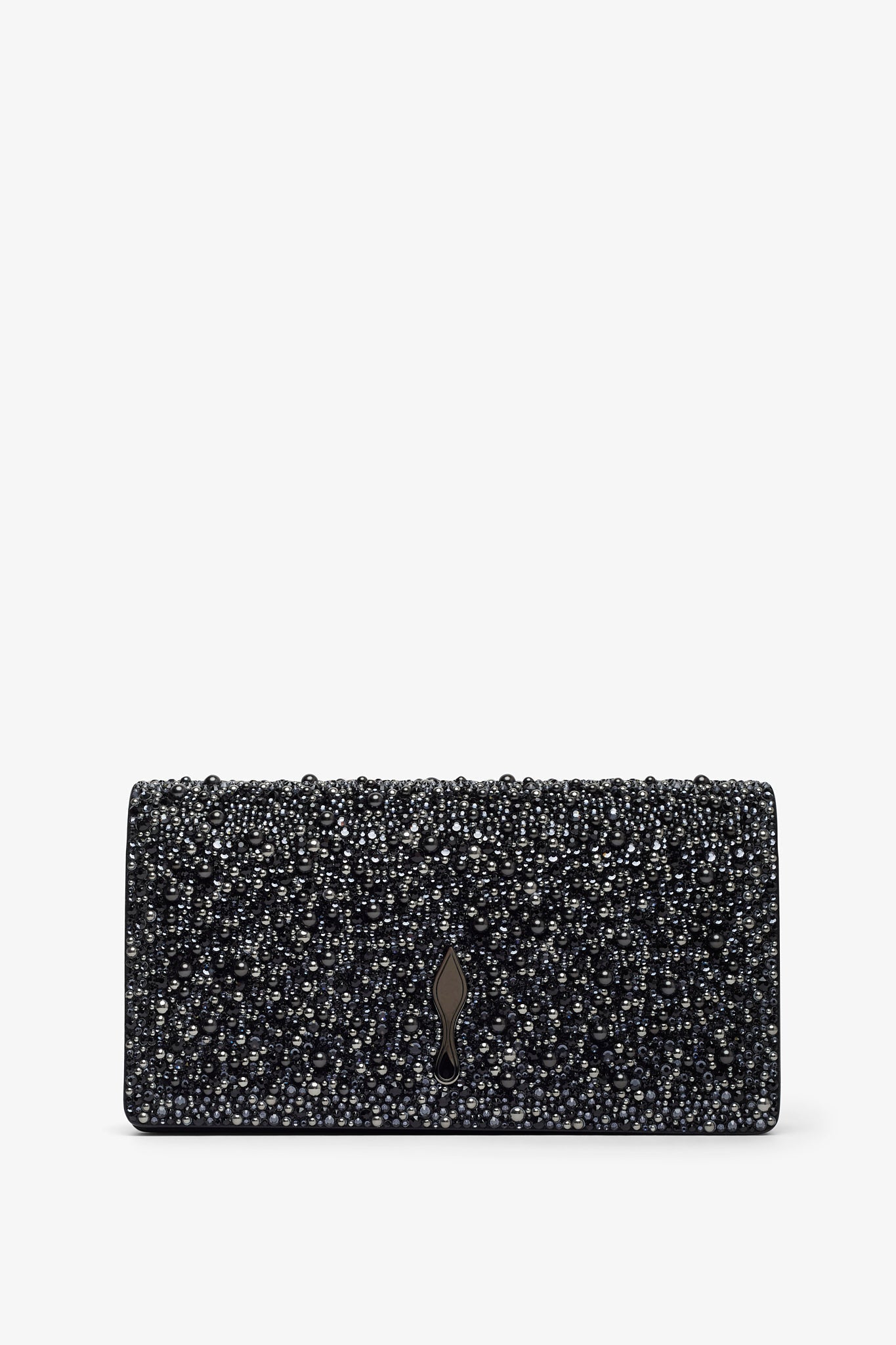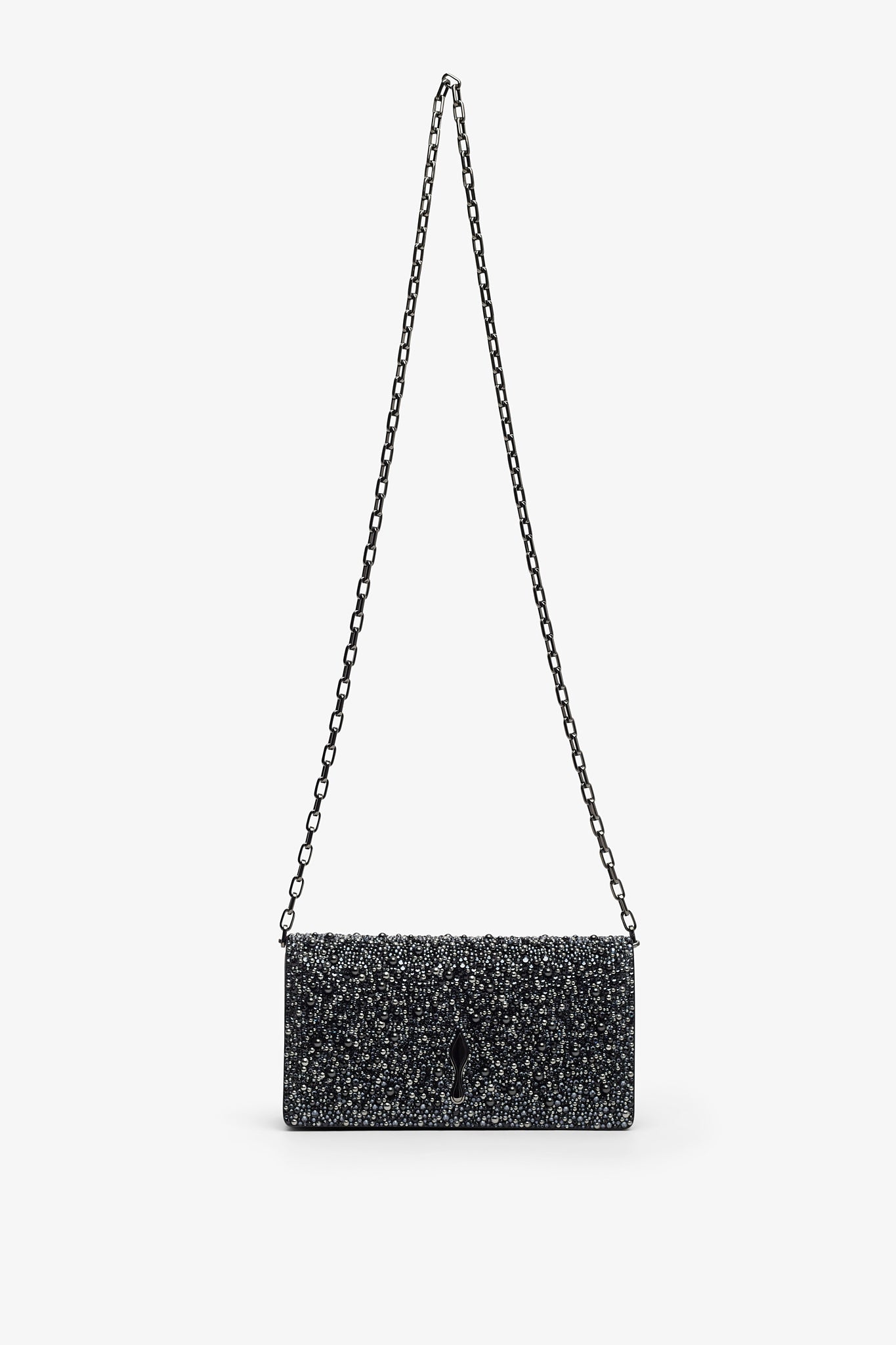 Black strass clutch bag from Christian Louboutin. The Bettina clutch bag is made in shimmering strass and pearl-embellished suede. It is finished with a hardware detail inspired by the iconic sole, offering multiple internal pockets and a detachable chain strap.