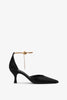Black leather pumps from Ferragamo. The Dana pumps are made of black leather with a pointed toe, adorned with gold-tone ankle straps, set on a slim stiletto heel measuring 70mm.