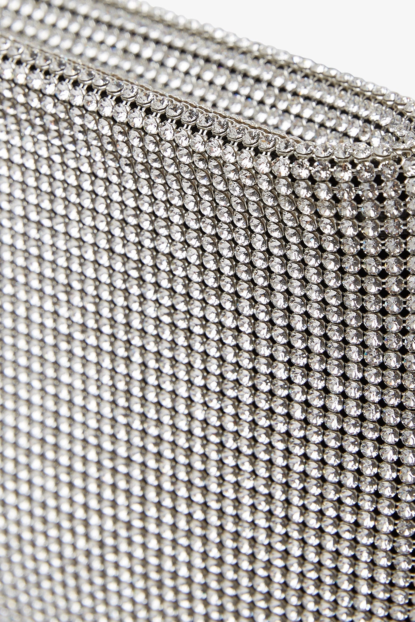 Silver crystal clutch from Christian Louboutin. The Maykimay clutch bag is made of silver crystals, featuring a zipper fastening with one main compartment and flat pocket.