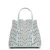 Mint leather tote bag from Alaïa. The Mina tote bag feature the designer's signature laser-cut design, two top handles and an optional cross-body strap, complete with an unlined finish.