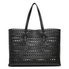 Black leather tote bag from Alaïa. The Mina tote bag is made of black leather, featuring two adjustable top handles, an open top including a separate zip pouch bag.